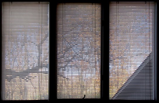 I seek new ways of making this happen. One morning, while visiting my brother- and sister-in-law in Reidsville, N.C., I saw the shadows of winter branches projected onto the window blinds. It made for a kind of Japanese byōbu screen.