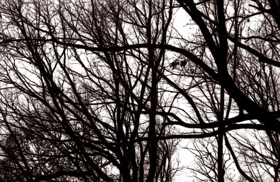 So, when I sit on my back patio and look up the hill at those mid-winter spring trees, with their augury of renewal, and their complex shapes and overlaps — those wonderful lines drawn against the sky’s paper — I want to catch something as it flickers by.