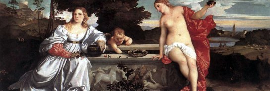 Sometime around 1515, the Venetian artist Titian painted a scene usually titled “Sacred and Profane Love.” In it, two women are seated at a marble well; one is nude, the other elaborately dressed. It comes as a shock to many Americans to find out that in this allegory, sacred love is represented by the naked lady.