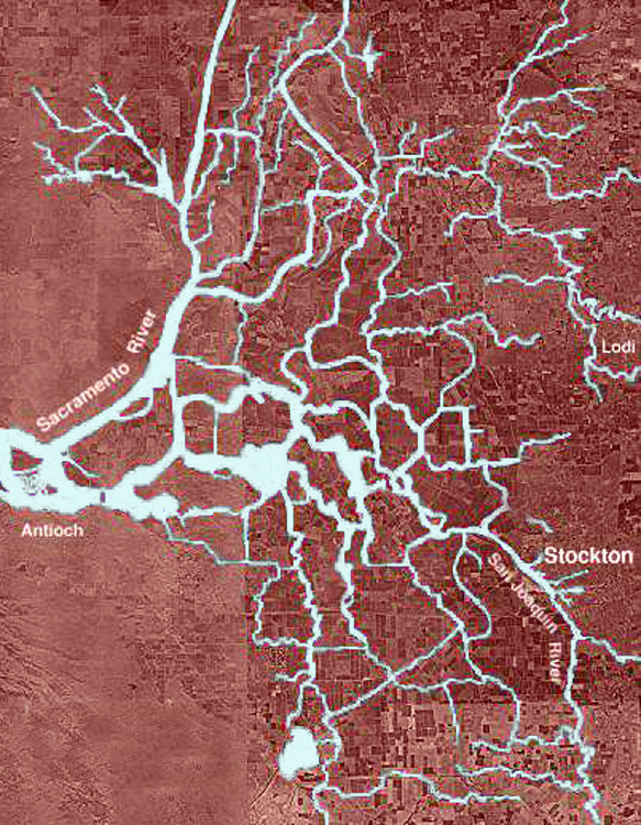 Many people don’t even know about the Delta. Here, at the confluence of the rivers, a huge triangular piece of geography that used to be marshland and estuary has been turned by hard labor into a quilt of “sunken islands” that run from Stockton north to Sacramento.