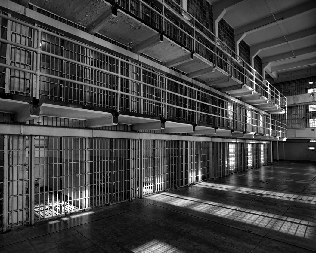 From some cells, you can see out the second-story windows, through bars, into tree branches.