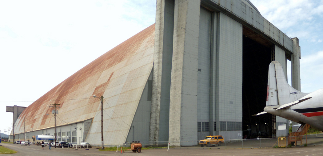 The building is 1,080 feet long, 300 feet wide and 195 feet high and covers 7 acres. You can’t miss it as you drive along 101. There are geological features listed on maps that are smaller than this great humpbacked mega quonset hut.