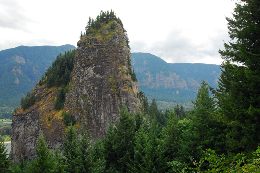Further along, Beacon Rock stands like a giant upended football, 848 feet high, with a hairpin stairway up its side for adventurous climbers. It was named by Lewis and Clark and marks the beginning of Columbia River tidewater.
