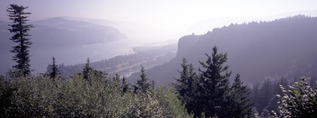 Beginning in Troutdale, you drive across the Sandy River toward Springdale. The road stays on the back side of the ridge, so you cannot see the river until you get to Portland Women’s Forum State Park, where a small parking lot affords a grand view up the gorge. You are on a bluff some 700 feet above the water, and the mountains pale into powdery blue as they recede. In the rake of morning light, it looks like a Chinese ink painting.