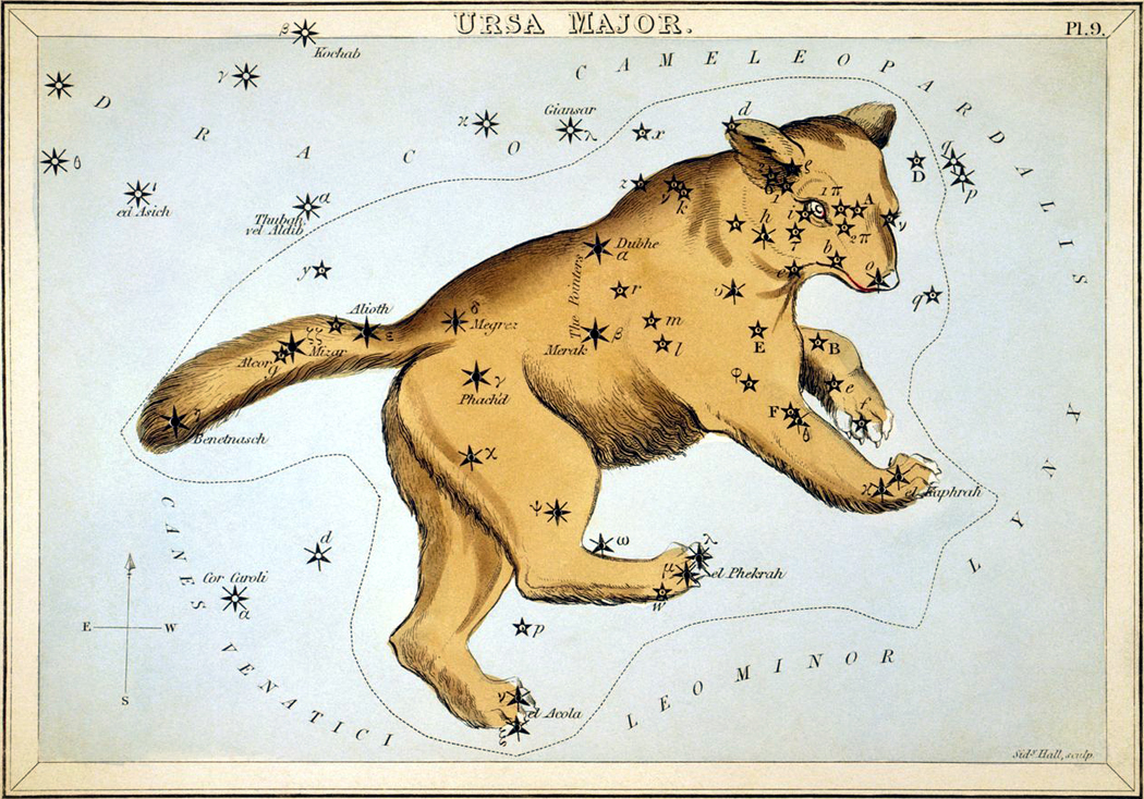 “It’s the Big Dipper over and over. The night sky is really just a bowl of marbles spilled into the empyrean, but we have found patterns there. Everyone recognizes the Big Dipper, even if they call it the Plough, or call it the Seven Sages, or the Great Bear — oddly, with a long tail — or Charlemagne’s Wagon, or in Finland, a salmon weir. Same stars, different asterisms.