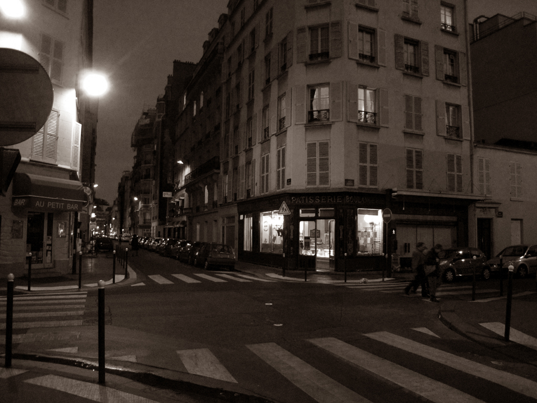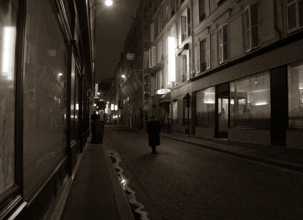 But, Paris at night is oddly empty, and what people you see are clustered around the steamed windows of cafes and bistros, or on the front steps of the opera house as it lets out, or waiting to get into the disco. It is almost as if these were the campfires that draw the bodies turned from the darkness. paris night 07x