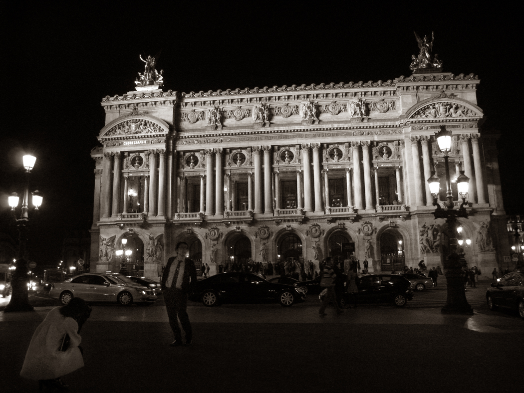 Compared to anything American, Paris is small. You can walk almost anywhere inside the Peripherique, and all the familiar signposts of the city are visible — Montmartre lit by floodlights on the hill, the Eiffel Tower turned into a fireworks display, the Palais Garnier pinned down by its own lights in the darkened city. paris night 14x