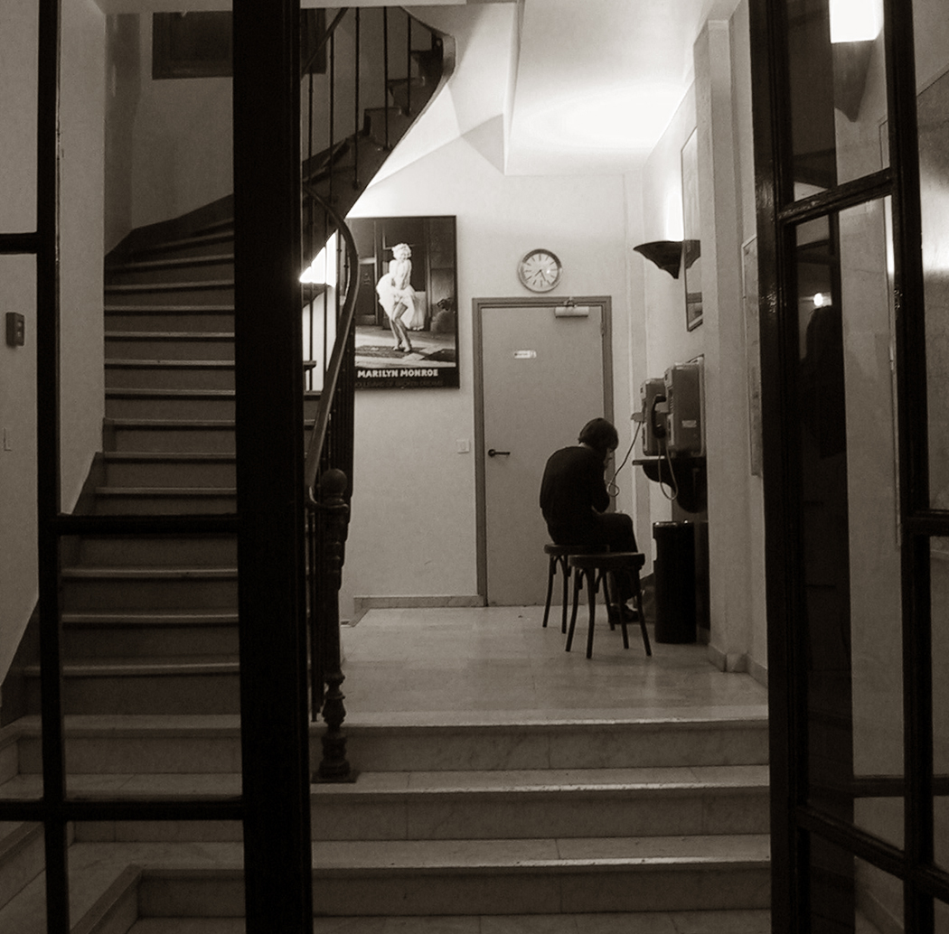 I love to get out into that night, and walk those streets, nodding to the proprietor of the flower shop as he stands by the door, stopping by the patisserie for the last pain au chocolate of the day, and finally passing the concierge of my hotel as he sits behind the desk, reading an Arab newspaper and drinking a small glass of Kirsch, not noticing me as I go through the lobby. Up the elevator, hardly bigger than a phone booth, and flipping on the timed hall light that busts open the darkness on my way to my room. paris night 17x