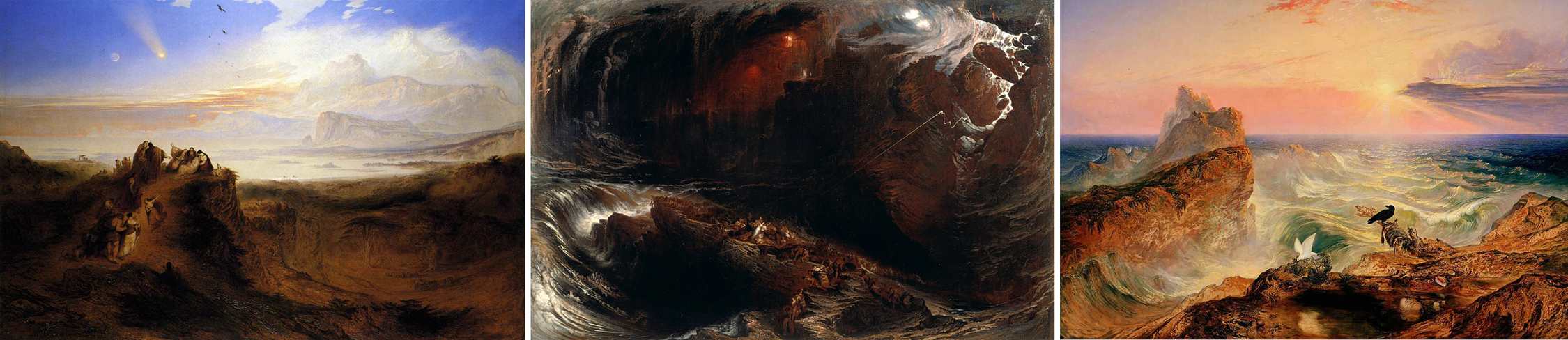 (Just for fun, let’s see Martin’s trilogy of paintings on the Flood: Eve of the Deluge, The Deluge, and The Assuaging of the Waters. The last was bought by Prince Albert for his Queen.)