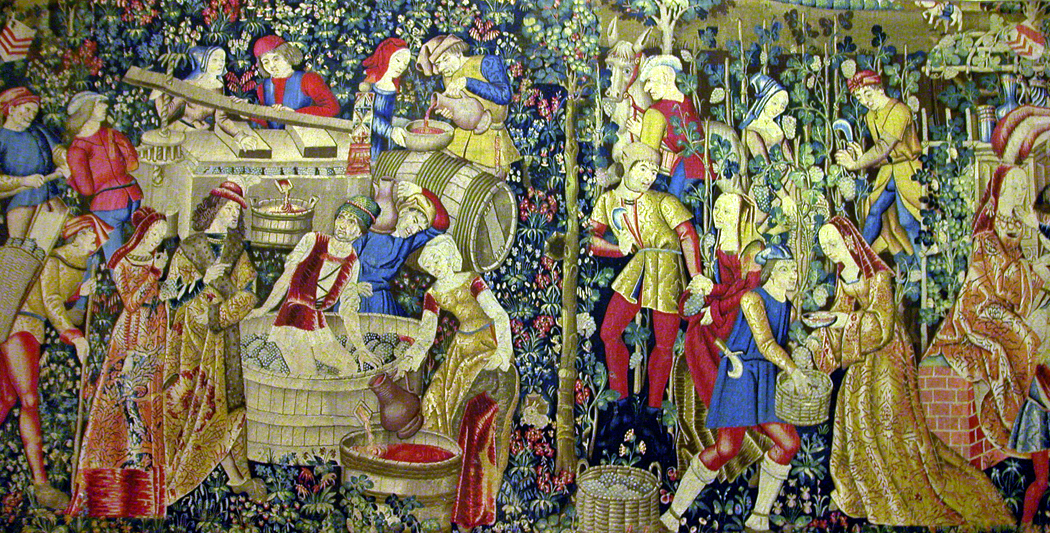 So, the Gothic world dug its arms up to the elbows in the soil, sniffing the moisture in the loam. You see it in the illuminated manuscripts, with their love of the seasons; you see it in the architecture, with its leafy pier capitals; you see it in the tapestries, with their mille fleur horror vacuii.