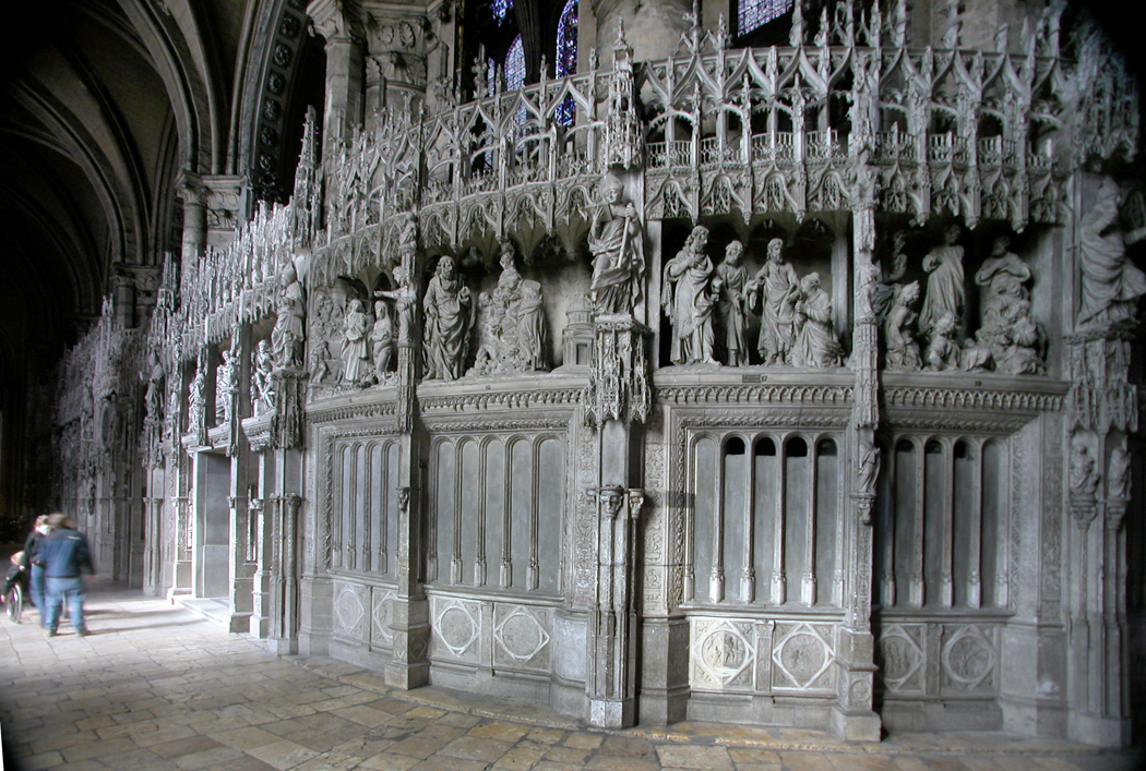 The interior almost gives you the feeling of an empty apartment, after someone has moved out. Where are the paintings, the furniture, the curtains? In Chartres, where are the windows, the interior carving, the elaborate bosses in the vaulting?