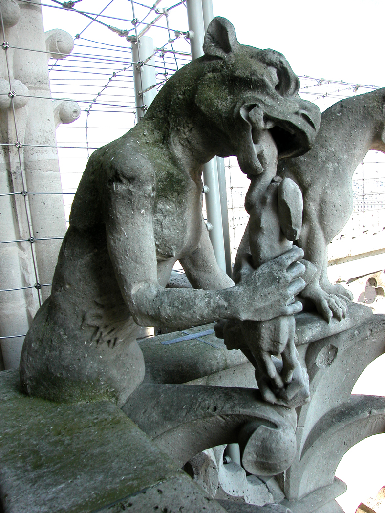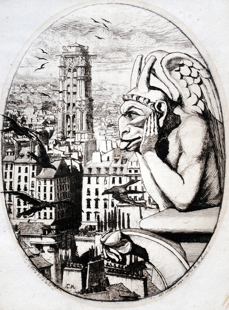 But even granted we have to go home, there is too much we haven’t gotten to do. So this morning was given over to making up some of the most important oversights — particularly, climbing the towers of Notre Dame de Paris to see the many carvings along the ramparts, including the most famous one, the Stryga, a grotesque with a garish nose, two horns, wings and the ears of Prince Charles, resting his chin in his hands looking out over Paris below him. He is a kind of ensignia for the cathedral, most famously in a 19th century photograph by Charles Negre, and an etching by Charles Meryon. If anything is the mascot of the church, it is the Stryga.