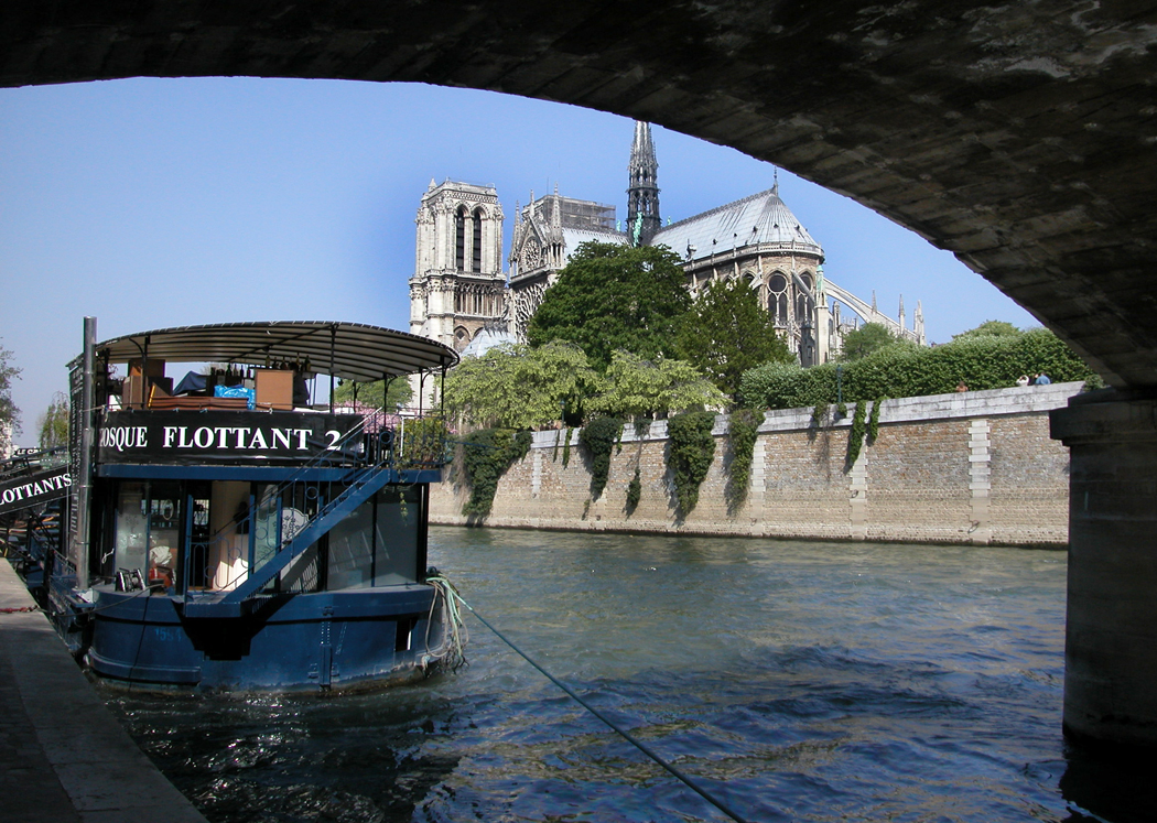 There was a big demonstration in the streets with people carrying French flags and shouting “Quite Palestine,” and we stood around and R. kept leading us down into la monde arabe. But we came out on the other side and had a wonderful walk along the river and saw houseboats and cafe boats and one cafe boat also had a magic show.
