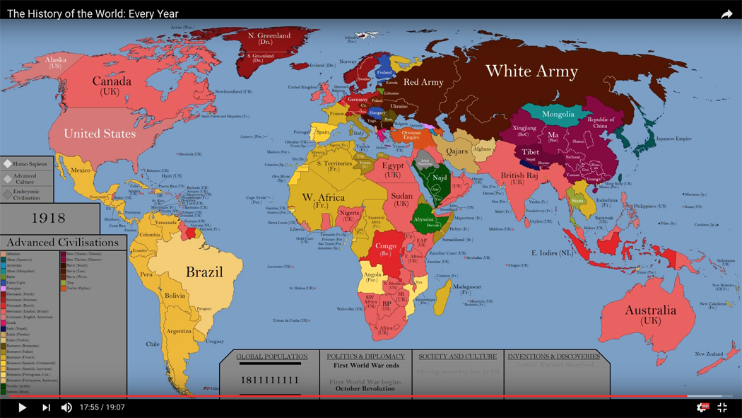 We have talked primarily about Europe, but the same sense of unstable borders and the comings and goings of nations can be seen worldwide. Another video worth watching: https://www.youtube.com/watch?v=-6Wu0Q7x5D0