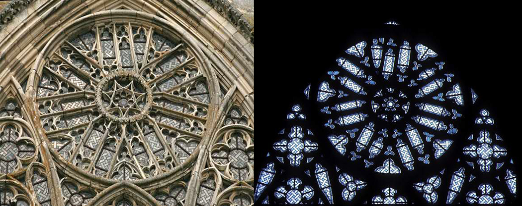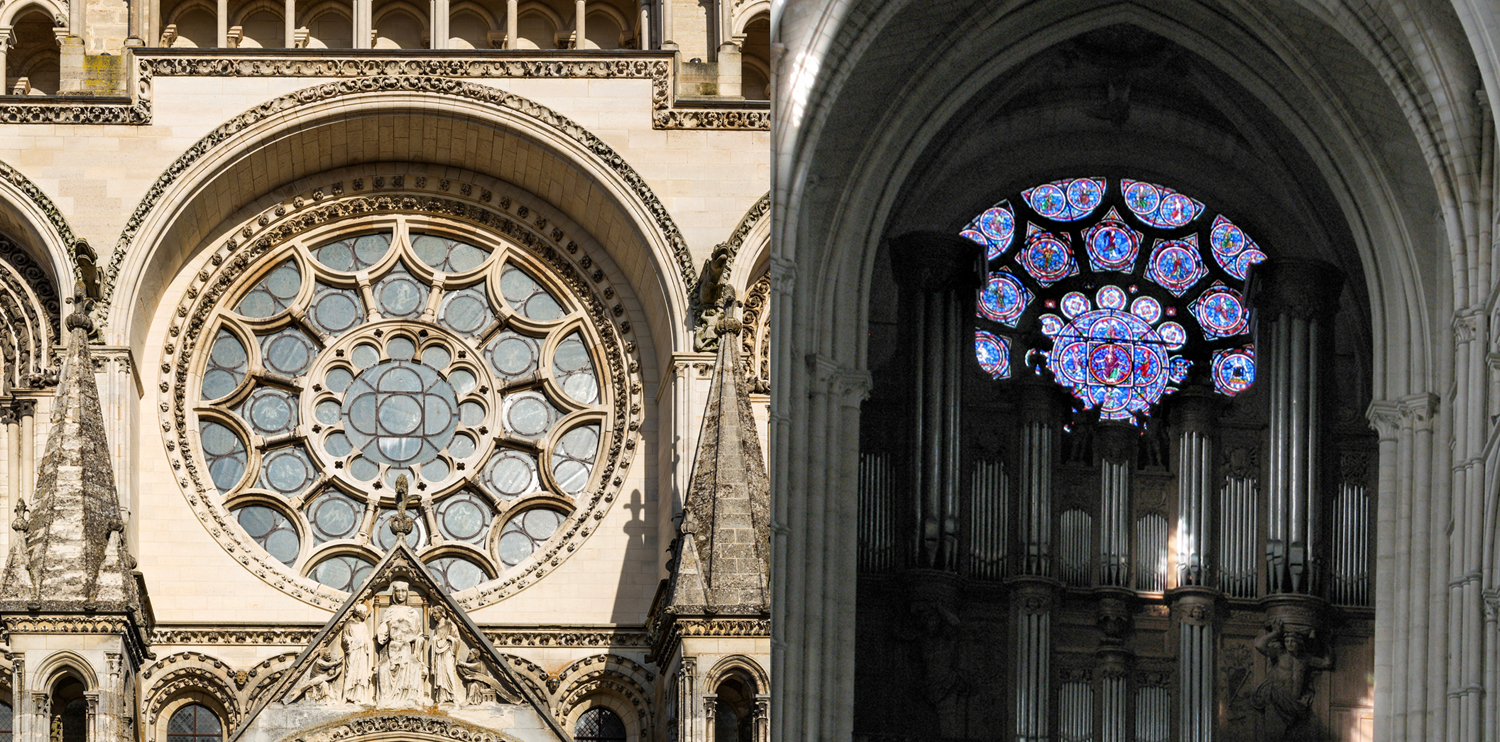 You also expect a great round rose window cut into the western wall, and perhaps two other roses in the north and south ends of the transept.