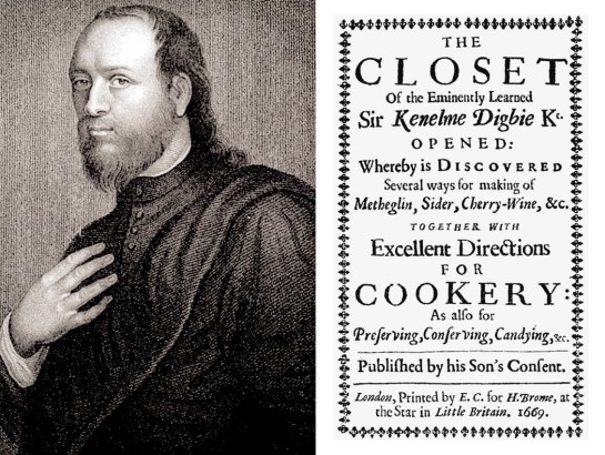 There are quite a few 17th century cookbooks, and I cannot include them all, but I can’t avoid The Closet of the Eminently Learned Sir Kenelme Digbie Knight Opened, from 1669. Digby was a courtier, diplomat, natural philosopher, astrologer and Roman Catholic intellectual, once called “The Ornament of This Nation.”