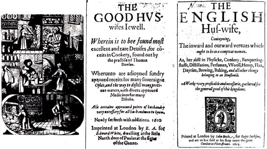 Thomas Dawson published The Good Huswifes Jewell in 1585 and Gervase Markham wrote The English Huswife in 1615.