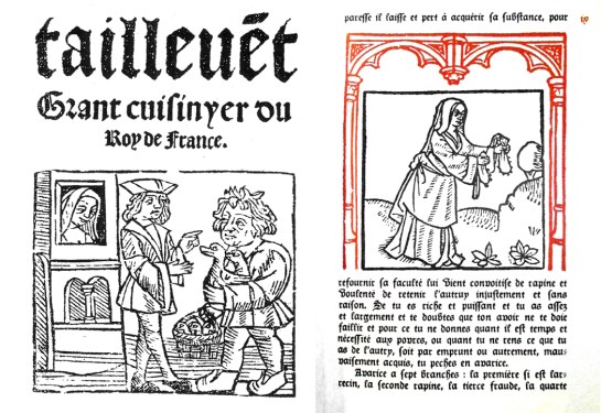 The first of these European-aimed cookbooks is Le Viandier, traditionally credited to Guillaume Tirel (1310-1395), aka Taillevant (“Cut Wind”), who was chef to the court of France during the Hundred Years War, although the earliest of four surviving manuscripts is dated from 10 years before Taillevent was born, making the attribution a bit dodgy.