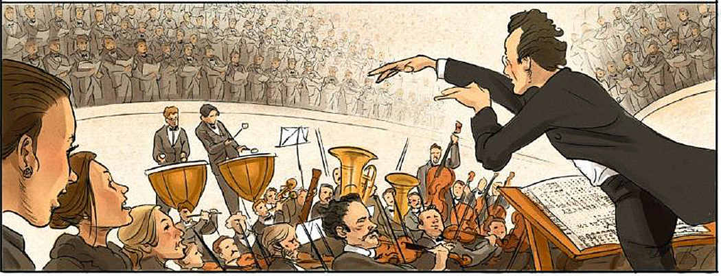 There follows an earthy Ländler as a second movement and a scurrilous Rondo Burlesque for the third. The final adagio is a kind of culmination of Mahler’s death music. Instead of a funeral march or a heroic death, the music dwindles to a quiet and inevitable cessation of its heartbeat. It trails off in a morendo so still and hushed that in a good performance, you can never quite tell when the orchestra stops playing. It just dies away. The effect can be overwhelming. In some famous performances, the audience refrains from applauding for as long as five whole minutes before exhaling in bravos and cheers. It is music that strikes deep.