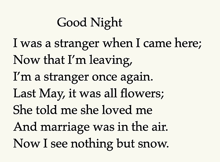 “I seek peace for my lonely heart,” the contralto sings. And ends, “The dear Earth everywhere/ blooms in spring and grows green anew./ Everywhere and forever blue is the horizon./ Forever … Forever.”