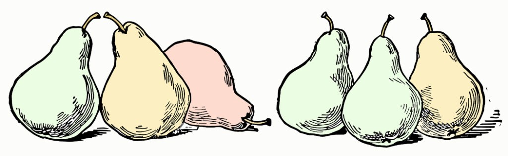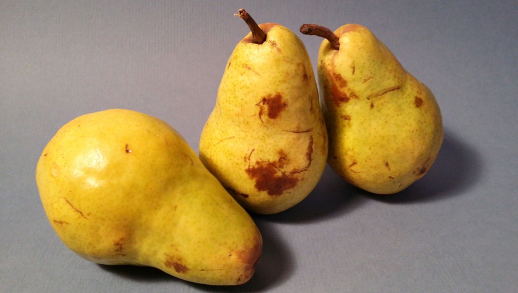 I take pears instead of apples here, because apples have too many words stuck to them, making them gummy with ideas, from Eve’s fruit of temptation to the computer on which I am writing these words.
