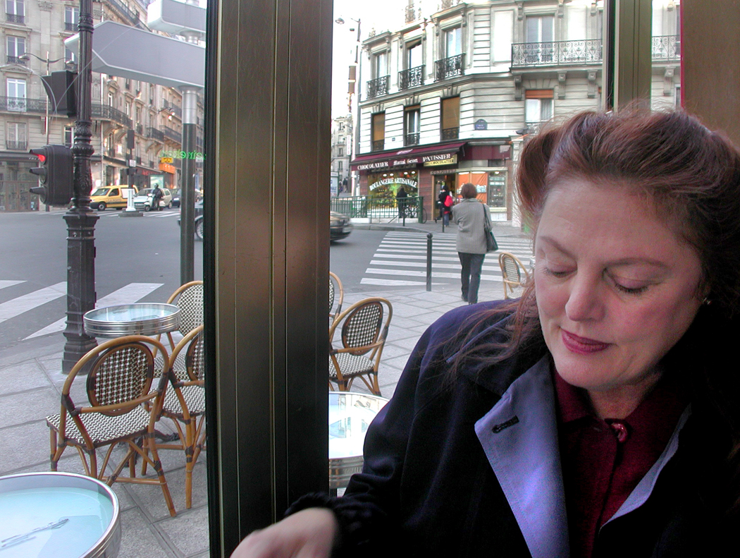 But now, as I’m re-reading the Hemingway, I am hit with my own past. I know so many of the streets he names. He and Hadley first lived on rue Cardinal Lemoine; our first visit put us right at the bottom of the hill off Lemoine. We ate breakfast each morning at Le Petit Cardinal bistro. Our regular waitress, Lauren, a sandy-blond woman in her 30s, would have our regular breakfast for us even before we ordered. (And one morning, when I had ordered a pain au chocolat and they were out, she went across the street to the patissier and brought back a sack of them, so I wouldn’t be deprived.)