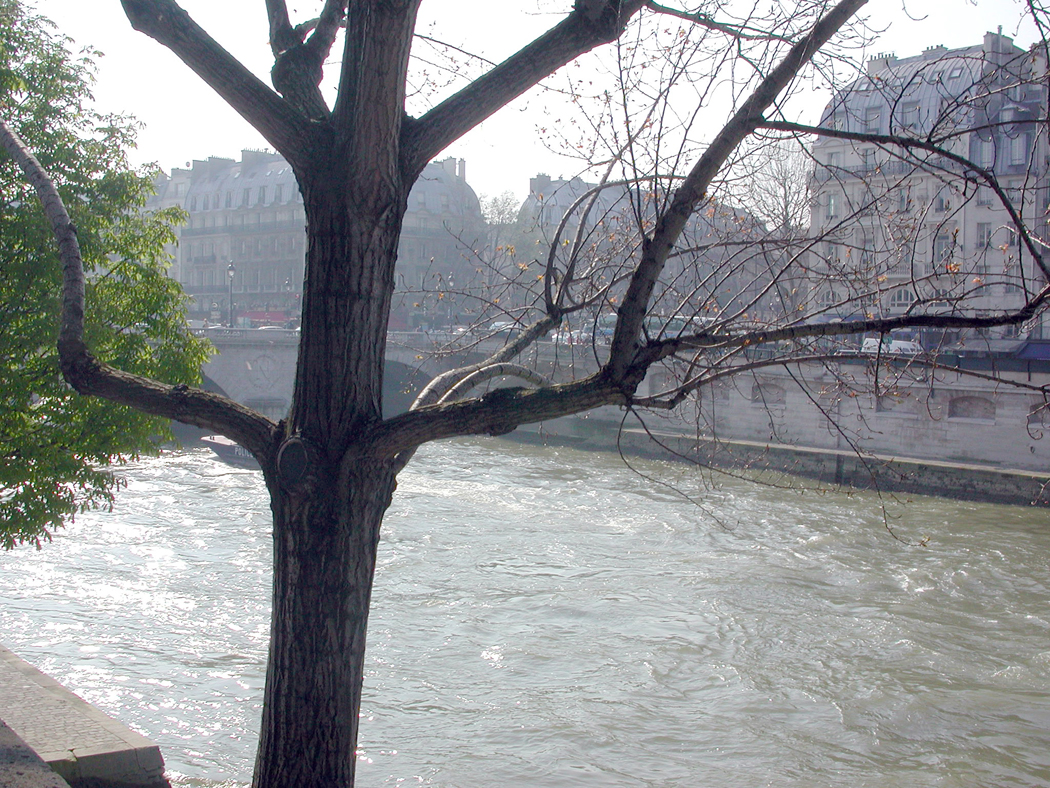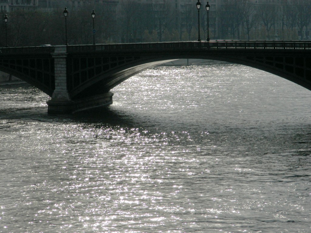 At the end of the line, we kept walking for a bit, down to the river and halfway across the bridge to the Gare de Austerlitz. It was chilly that morning and the sun, barely a glare through the grey sky, broke into crystals on the sharp-edged little waves of the Seine.