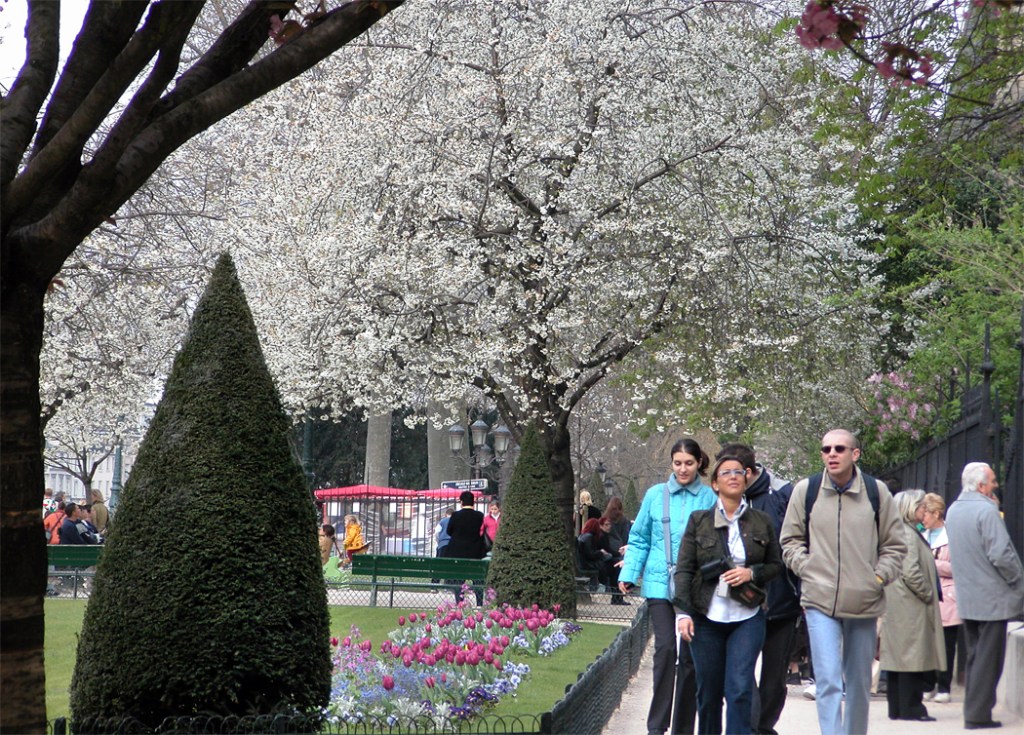 At the Luxembourg Gardens, we walked among the statues and horse-chestnut trees and were in the middle of a living city. People all around were walking dogs, sitting under trees and reading, or cuddling or smoking. Teenagers rolled past on their inline skates and joggers puffed around corners. All I heard was French.