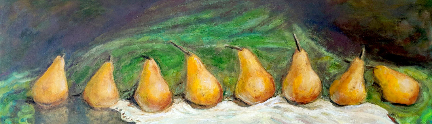 And I think of pears in art — those buttery layers of paint by Paul Cezanne — and the other still life art that singles out this bit or that of the physical presences of the world and shows them to us so we may notice them and appreciate them.