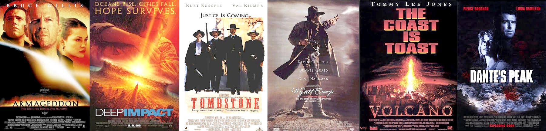 Among the most notable: Deep Impact and Armageddon in 1998; Tombstone and Wyatt Earp 1993 and ’94; Dangerous Liaisons and Valmont in 1988 and ’89; Volcano and Dante’s Peak in 1997. Sometimes the pairing is quite specific: drag queens on a road trip across a continent to discover themselves — The Adventures of Priscilla, Queen of the Desert in 1994 and To Wong Fu, Thanks for Everything! Julie Newmar a year later.