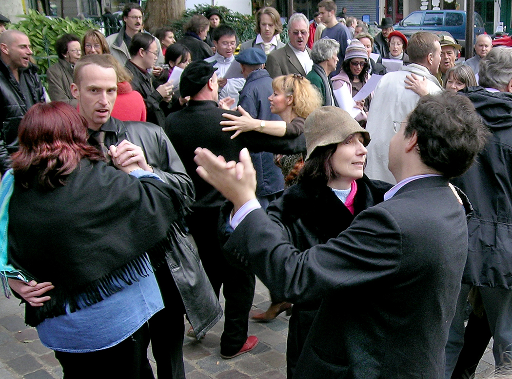 The street was mobbed. It was a hive of activity, and at the bottom of the hill, by the Saint-Médard Square, there was a small band, with accordion, playing music. The crowd sang along and gathered in a circle around the musicians and two or three couples would move to the center and begin dancing, all with great smiles on their faces.
