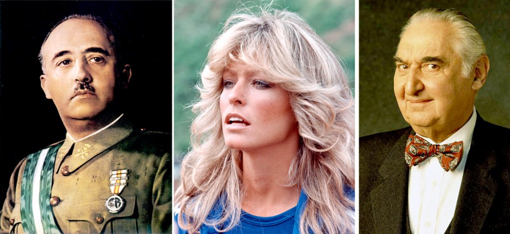 Federico Fellini, Francisco Franco, Faith Ford, Farrah Fawcett, Freddy Fender, Fionnula Flanagan, Fannie Flagg, Frances Farmer, Felix Frankfurter, Fyvush Finkel, Fannie Farmer, Frankie Frisch