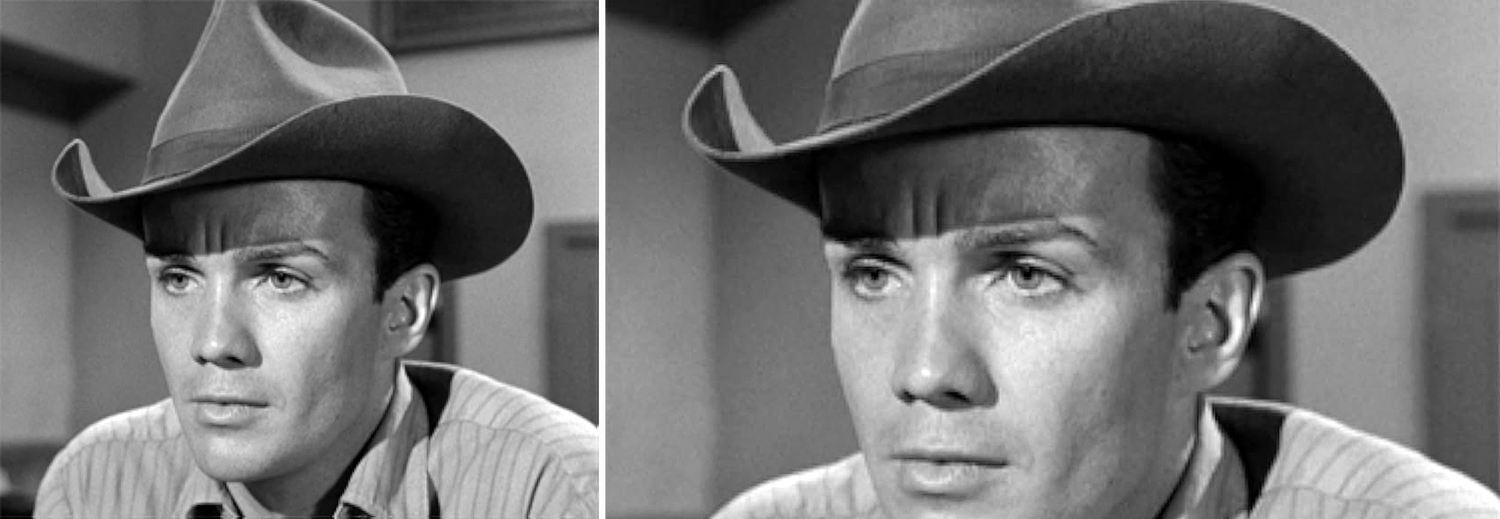 However, in some of the newly broadcast Gunsmokes, someone has taken care to reframe the shots — moving the frame up or down — so as to include the chins and mouths of the characters. To do this, the technician has to pay attention shot by shot as he reframes the image.