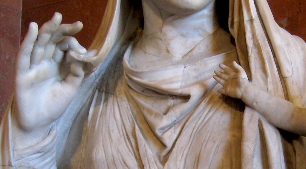 One soaks up the visual patterns, makes connections, recognizes the habits of humankind. Recognizes the shared humanity. The differences between me and Gilgamesh are merely surface tics. When I see the hand of the Roman emperor, it is my hand. I feel kinship with all those whose works and images appear in the galleries.