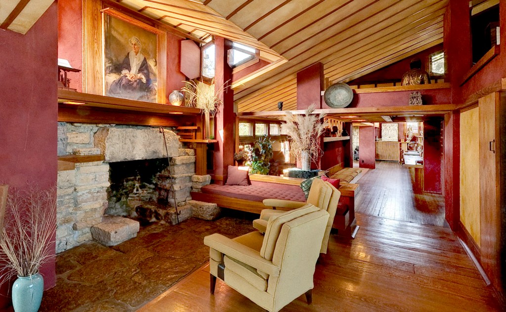 Wright was especially concerned with how one room led to another, how a low ceiling makes you feel, or how nooks make magic. He called space “the invisible fountain from which all rhythms flow and through which they must pass.” These are things that cannot be conveyed in pictures; you have to be there, in the rooms, to sense their splendor.