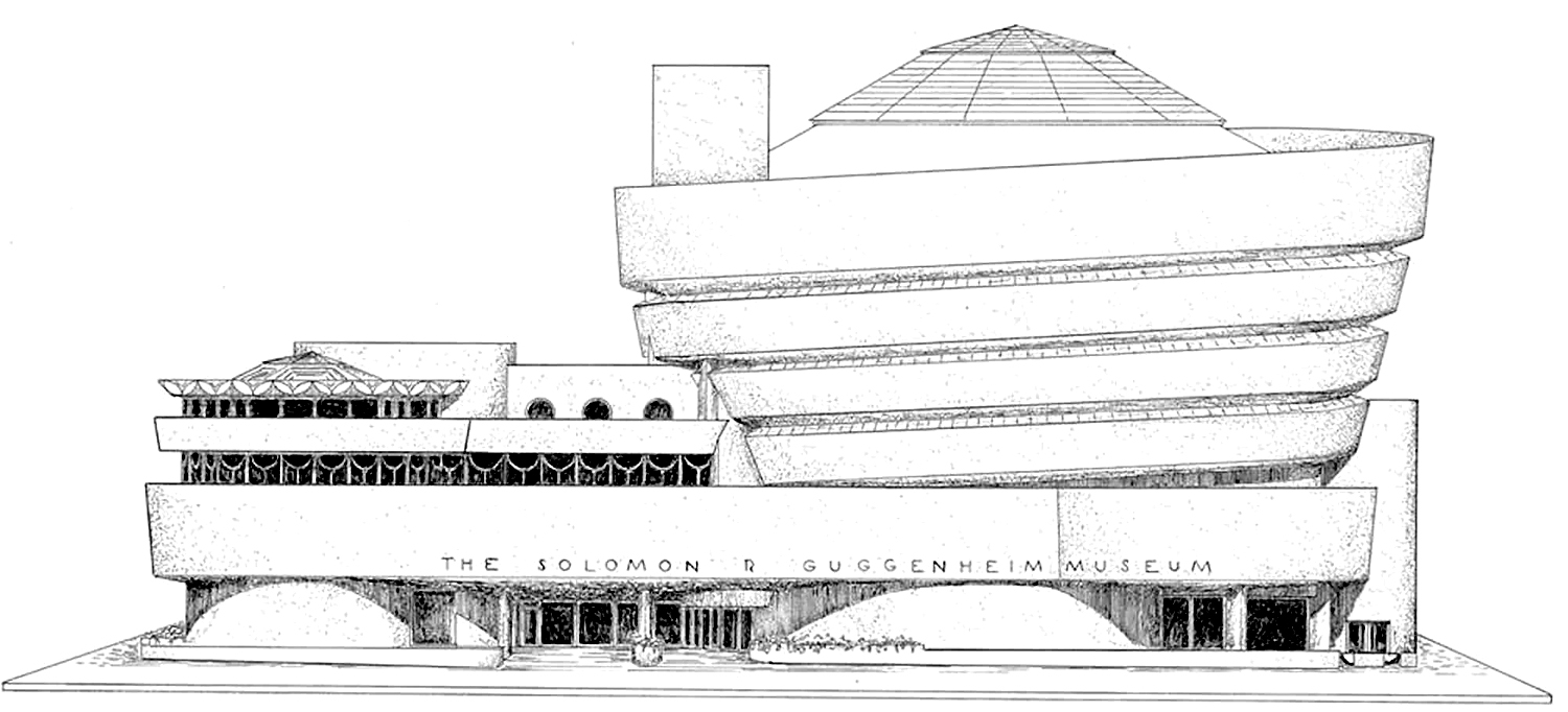 The second great strength of Wright’s work is its unceasing originality. Wright ideally approached each design as a completely new problem, to be solved in its unique way. This means that, unlike the work of his great contemporary Mies van der Rohe and his International style, there is not, after the Prairie style, a single “look” that can be identified as Wright’s. For Wright, “what we did yesterday, we won’t do today.”