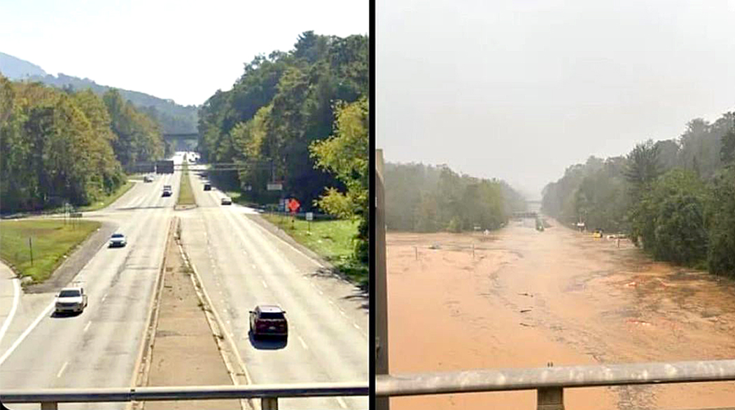 The Asheville airport was covered with military planes and scores of copters. The only way into the area for the first days was by air. I-40, the main highway, was cut off on both ends by landslides. The bridges along I-26 were washed out. All roads in and out of Buncombe County were blocked and closed. If we had wanted to leave, we couldn’t.