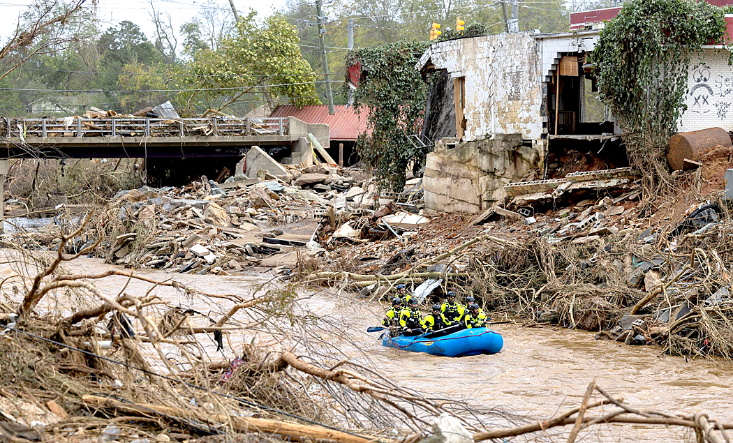 On September 27 the remnants of Hurricane Helene turned Asheville, N.C., into a post-apocalyptic landscape. Fallen trees blocked streets and roads were turned into creek beds. Power lines were downed everywhere and the two rivers of the region carried whole houses downstream. Bridges are gone. City water lines destroyed. The buildings that remain in the lower areas of Buncombe County are larded with a foot-deep layer of toxic mud. People died.