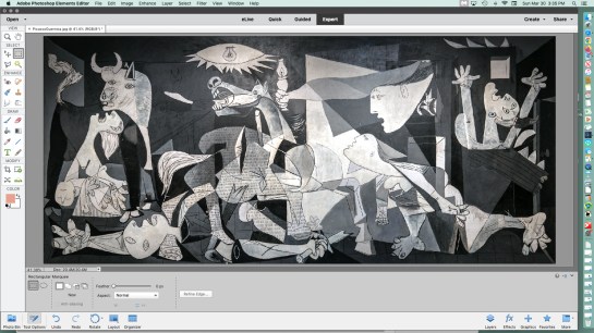 And that was part of its meaning. It was made in outrage over the 1937 German bombing of the Basque down in Spain and if it had been made to display comfortably on a gallery wall, it would have been just another painting for sale. But at size, it forces you to consider the suffering and death. Its size means you cannot just look away.