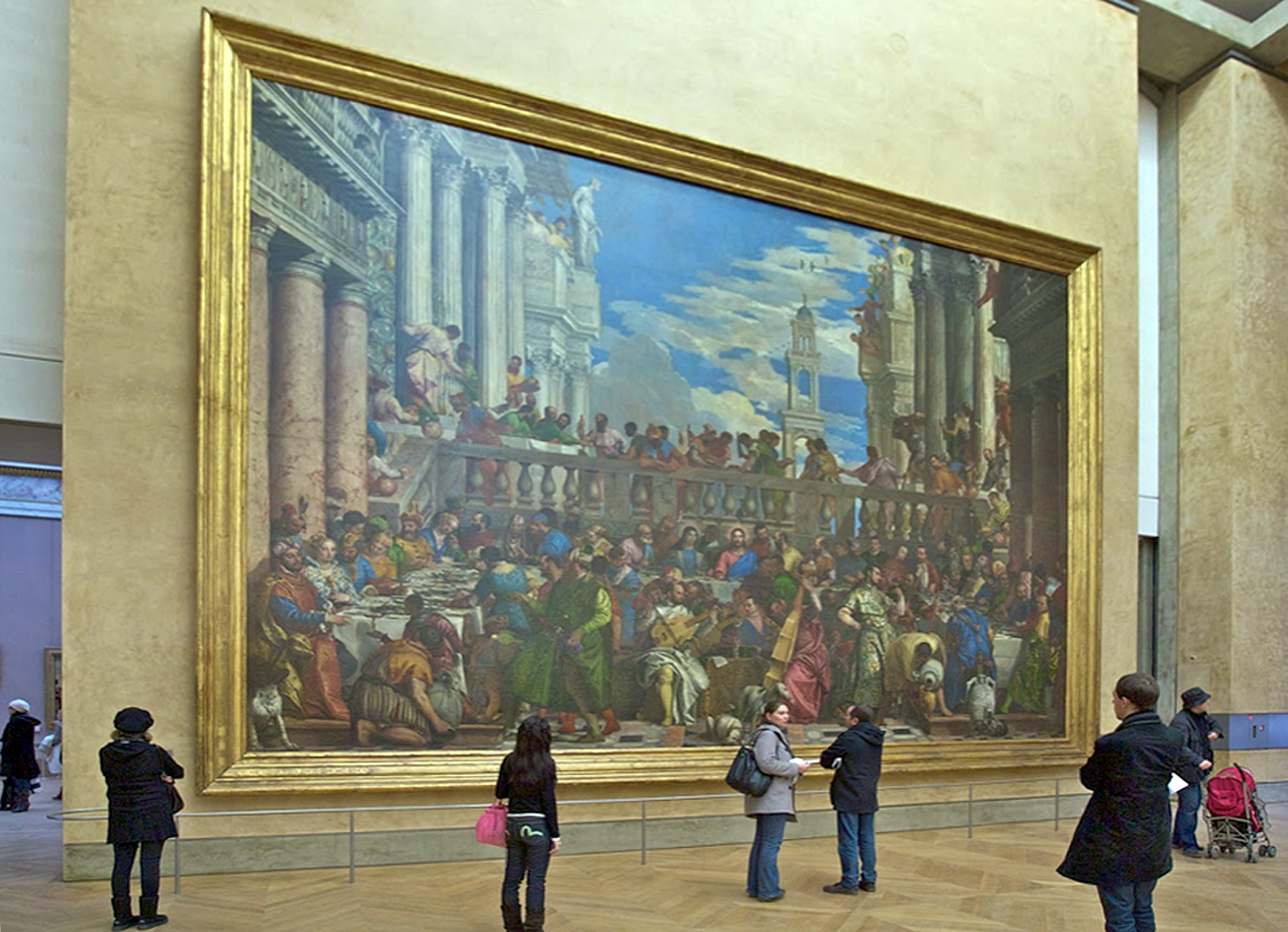 If you walk through the Louvre, another famous art history painting you find will be Veronese’s The Wedding at Cana. Another wallop in the gut. It is 22 feet high and 33 feet from side to side.