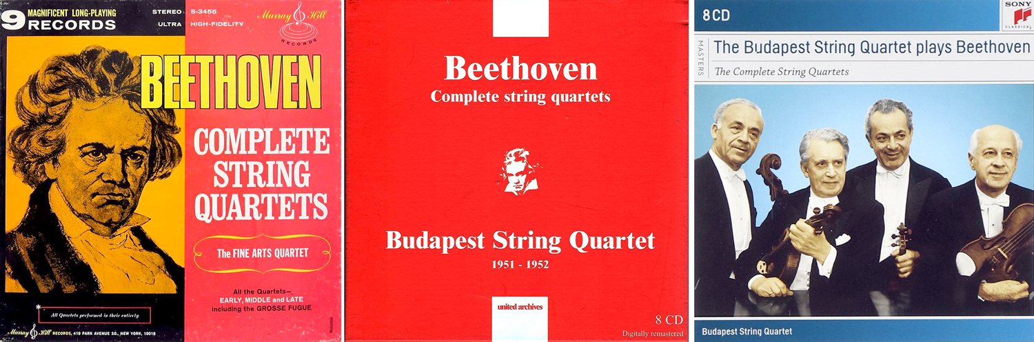 I have not been able to find a CD version of the Fine Arts Quartet set, but I found much better-played versions later on. I have owned a half-dozen or so complete sets of the Beethoven quartets, and as many of just the late quartets, but on the desert island, I would take the original mono versions by the Budapest String Quartet. They redid them later in stereo, but I like the earlier set better. I could have chosen the Guarneri, or the Tokyo or the Emerson, but I still think the Budapest have the measure of them best.