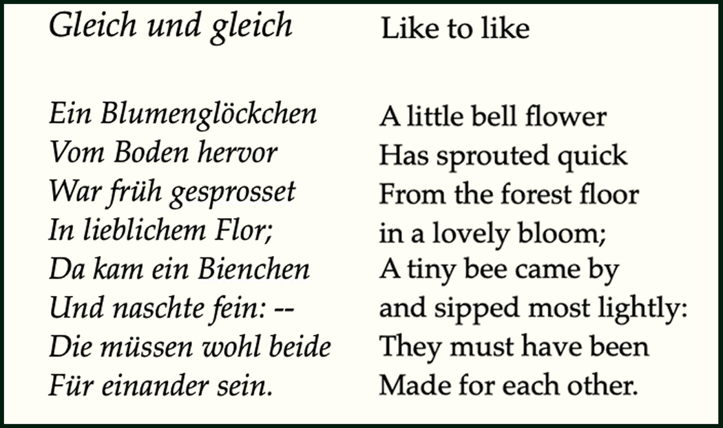 I try to hear the German in my mind to catch its melody, but I am walled out by my English. All I can gain from the reading is a commonplace.
