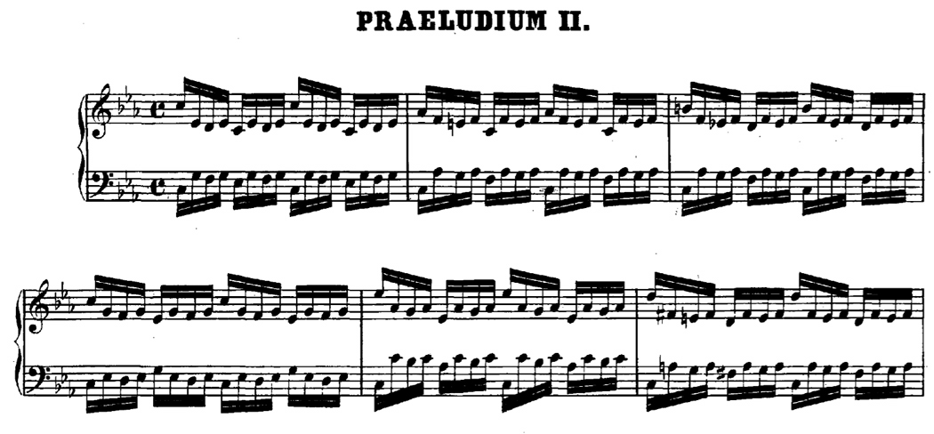 His music may have wheels spinning inside wheels, but it’s always surprising, like the C-minor prelude from the Well-Tempered Clavier, Book I, which begins with a repeated rhythmic figure, unchanging over a constantly shifting harmony, but about three-quarters of the way through, he simply gives up on the pattern and takes off on a flourish of notes like a skyrocket spinning in air, and just when you get comfortable with that, he settles into a melismatic cadence that keeps promising to come to a rest but refuses to stop.