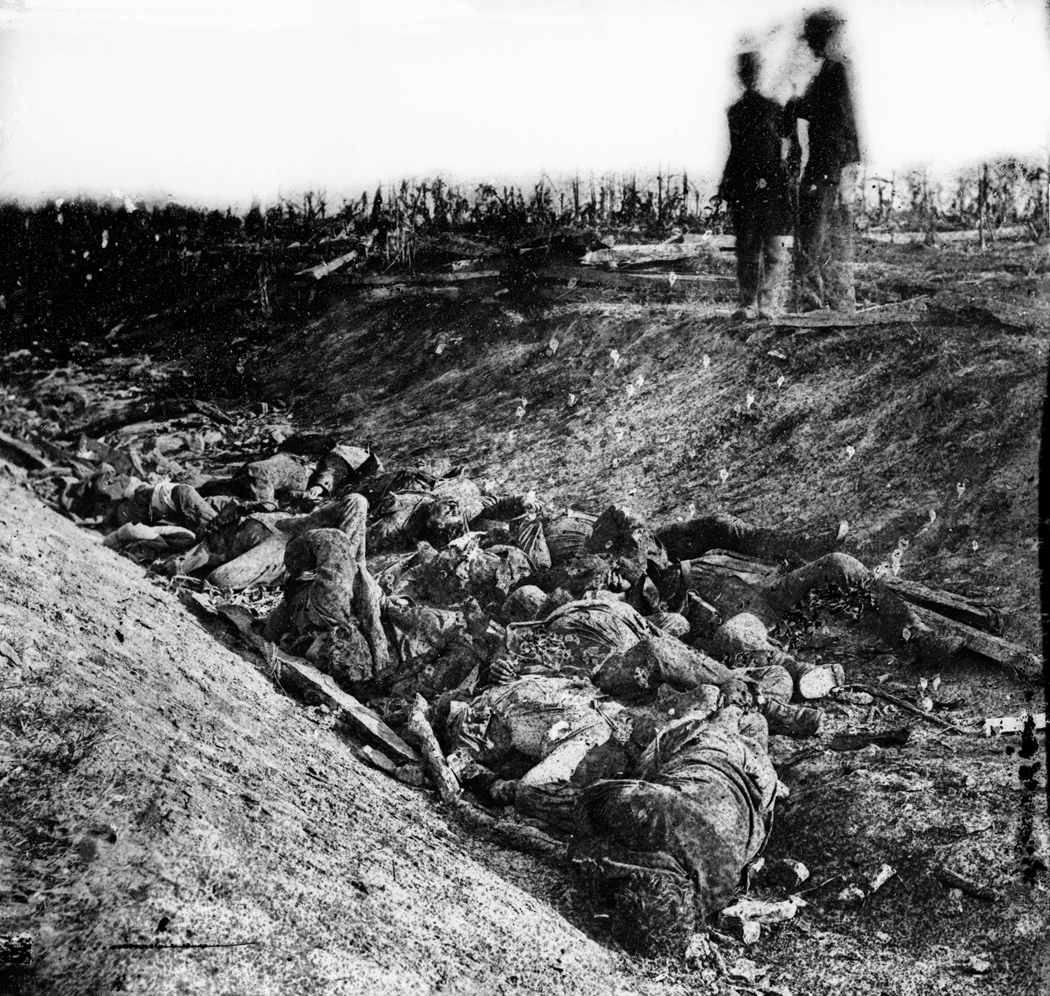 Antietam was the worst single day of the Civil War. Nearly 23,000 men were killed or wounded. They were piled like meat on the ground and left for days before enough graves could be dug for them. There were flies, there was a stench. The whole thing was a fiasco, for both sides, really.