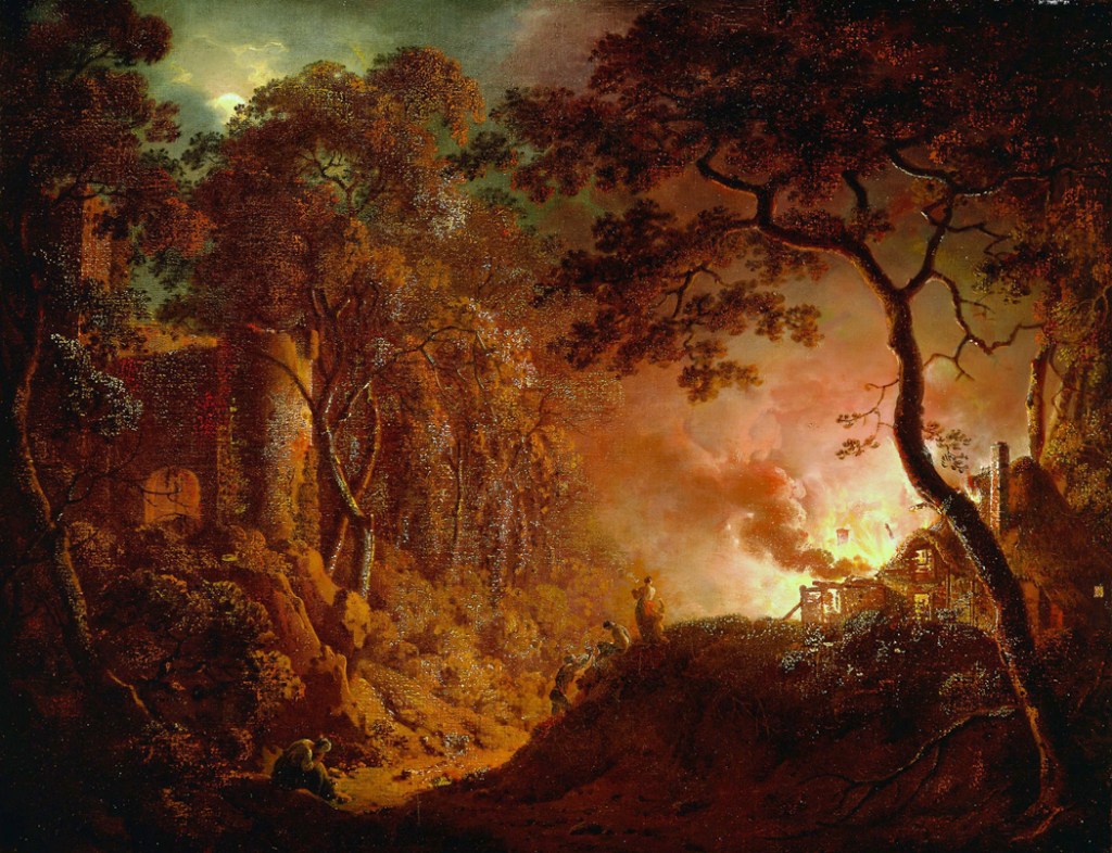 “Cottage on Fire,” Joseph Wright of Derby 1786