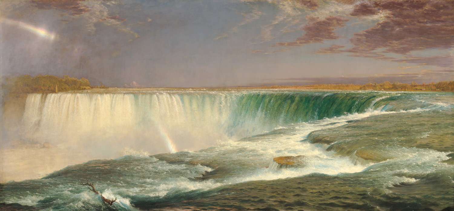 Its effect was stunning for the time. Even a century later, writer David Harrington could say “Niagara is the American’s mythical Deluge which washes away the memory of an Old World so that man may live at home in a New World. The painting is an icon of psychic natural purgation and rebirth. Poetically a New World emerges as the waters of a flood subside. The rainbow, sign of the ‘God of Nature’s’ covenant with man, transfixes the beholder. … Niagara is a revelation of the cosmos to each and every man.”
