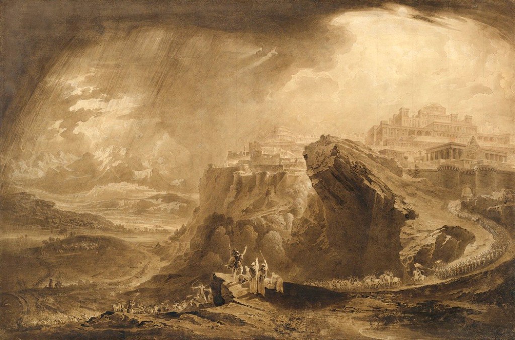 Martin turned to printmaking to make his work available to a wider audience and published, in 1824, an enormously popular series of illustrations to John Milton’s Paradise Lost. (These were, in part, the inspiration for the later Gustave Dore to make his own series for the epic poem).