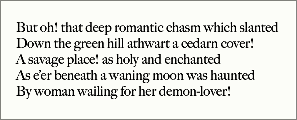 But The Sublime steps into the spotlight with the advent of Romanticism. It is in the poetry of Byron, the novels of Victor Hugo, the paintings of Caspar David Friedrich. It is behind the fad for Gothic novels and the nature poetry of Wordsworth and Coleridge.