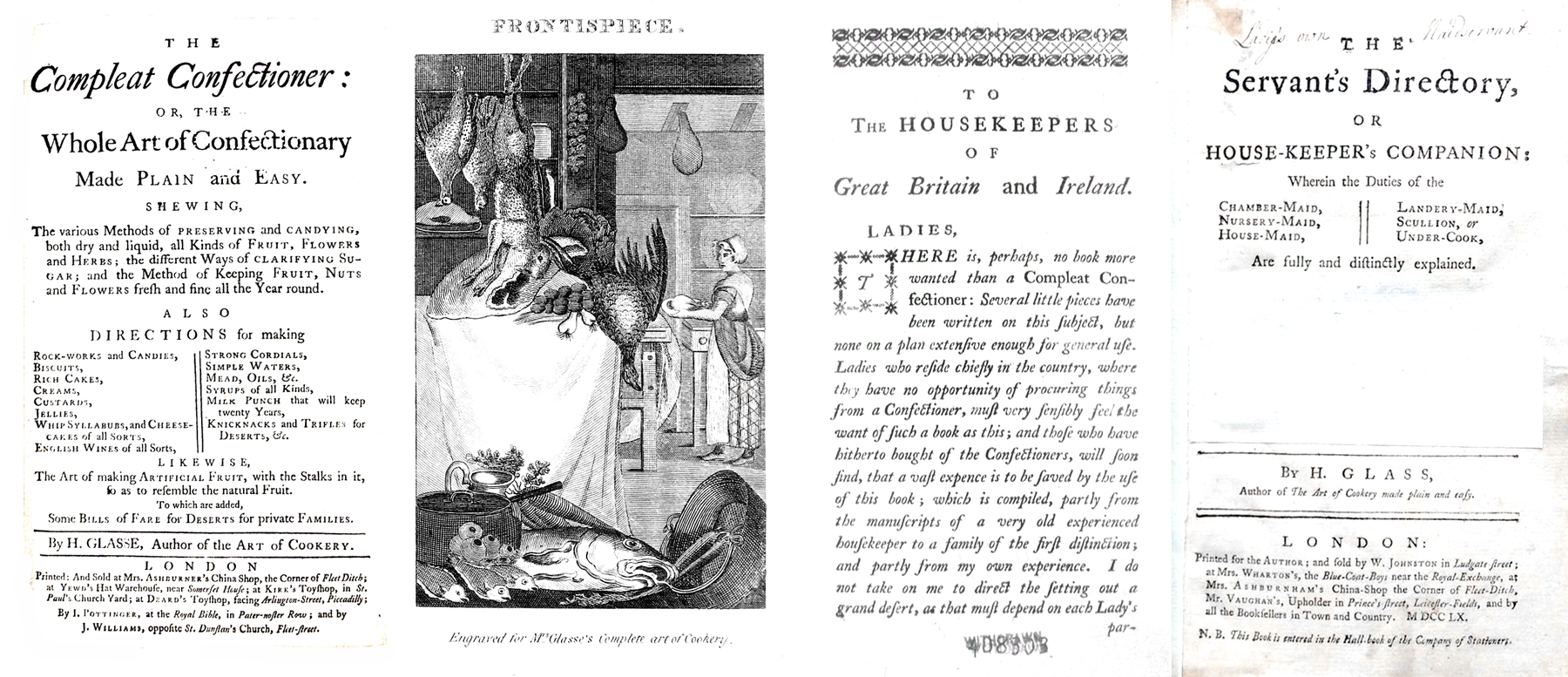 Earlier, in the previous century, there arose an appetite for books written for women, either as family cooks, or ladies in charge of a servant kitchen. The first such book was published in 1674 by Hannah Wolley; she was followed by Mary Kettilby, Eliza Smith, Sarah Harrison, Elizabeth Moxon, Susannah Carter, Elizabeth Raffald and Amelia Simmons — the last being the first cookbook author in America. And Hannah Glasse, who wrote the best-selling cookbook of the 18th century.