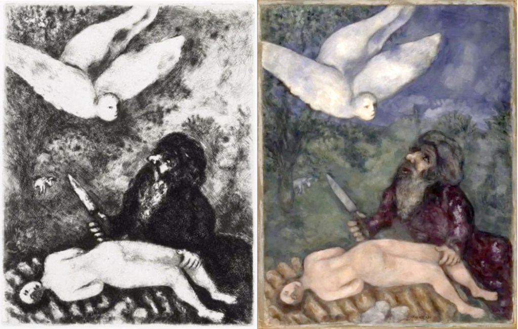 This problem has cropped up again recently when a friend and former colleague posted a series of videos on YouTube cataloguing the biblical paintings of Marc Chagall, accompanied by ironic and meaningful music by Tori Amos, John Lennon, Mix Master Mike and others. He asked for my opinion. I watched all nine short videos (watch the first one here) and was impressed by his graphic and editing skills, but had a hard time otherwise. I simply don’t much like Chagall’s painting. Never have.